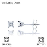 Handmade 0.80ct F VS Princess Cut 18ct White Gold Diamond Stud Earrings