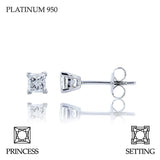 Handmade 0.80ct F VS Princess Cut Platinum 950 Diamond Stud Earrings