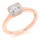 18ct Rose Gold Diamond Engagement Ring With GIA Certified Princess Cut Centre Stone and Round Brilliant Cut Diamond Halo