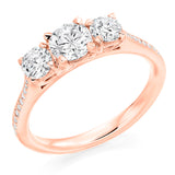 18ct Rose Gold GIA Certified Round Brilliant Cut Diamond Trilogy Engagement Ring With Diamond Set Shoulders