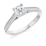 18ct White Gold GIA Certified Round Brilliant Cut Diamond Solitaire Engagement Ring With Diamond Set Shoulders