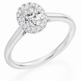 18ct White Gold GIA Diamond Engagement Ring With Oval Cut Centre Solitaire and Diamond Halo