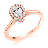 9ct Rose Gold GIA Certified Diamond Engagement Ring With Pear Shape Centre Stone and Round Brilliant Cut Diamond Halo