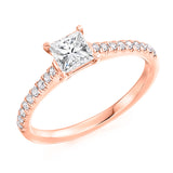 9ct Rose Gold GIA Certified Princess Cut Solitaire Diamond Engagement Ring With Diamond Set Shoulders