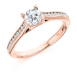 9ct Rose Gold GIA Certified Round Brilliant Cut Diamond Solitaire Engagement Ring With Diamond Set Shoulders