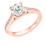 9ct Rose Gold GIA Certified Round Brilliant Cut Solitaire Diamond Engagement Ring With Diamond Set Shoulders