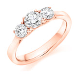 9ct Rose Gold GIA Certified Round Brilliant Cut Solitaire Diamond Trilogy Set Engagement Ring