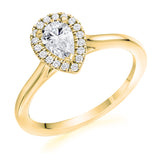 9ct Yellow Gold GIA Certified Diamond Engagement Ring With Pear Shape Centre Stone and Round Brilliant Cut Diamond Halo