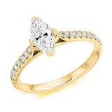 9ct Yellow Gold GIA Certified Marquise Cut Solitaire Diamond Engagement Ring With Diamond Set Shoulders