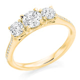 9ct Yellow Gold GIA Certified Round Brilliant Cut Diamond Trilogy Engagement Ring With Diamond Set Shoulders
