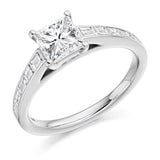 Platinum 950 Diamond Engagement Ring With GIA Certified Princess Cut Centre Stone and Baguette Cut Set Shoulders