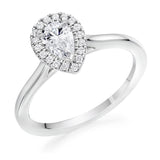 Platinum 950 GIA Certified Diamond Engagement Ring With Pear Shape Centre Stone and Round Brilliant Cut Diamond Halo