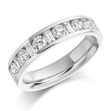 This Ladies 18ct White Gold Half Set Mixed 1.08ct Diamond 4.5mm Eternity Ring is in a channel set. A channel set Eternity ring has a neat edged style which allows each diamond to sit perfectly side by side. This style is traditional and should be worn next to a engagement ring with either plain shoulders or diamond channel set shoulders of the same style.