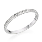 This Ladies 18ct White Gold Half Set Round Brilliant 0.07ct Diamond 2mm Eternity Ring is in a channel set. A channel set Eternity ring has a neat edged style which allows each diamond to sit perfectly side by side. This style is traditional and should be worn next to a engagement ring with either plain shoulders or diamond channel set shoulders of the same style.