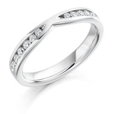 This Ladies 18ct White Gold Half Set Round Brilliant 0.37ct Diamond 3mm Eternity Ring is in a channel set. A channel set Eternity ring has a neat edged style which allows each diamond to sit perfectly side by side. This style is traditional and should be worn next to a engagement ring with either plain shoulders or diamond channel set shoulders of the same style.