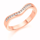 This Ladies 9ct Rose Gold Half Set Round Brilliant 0.16ct Diamond 3mm Eternity Ring is in a channel set. A channel set Eternity ring has a neat edged style which allows each diamond to sit perfectly side by side. This style is traditional and should be worn next to a engagement ring with either plain shoulders or diamond channel set shoulders of the same style.