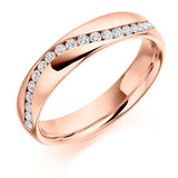 This Ladies 9ct Rose Gold Half Set Round Brilliant 0.30ct Diamond 4mm Eternity Ring is in a channel set. A channel set Eternity ring has a neat edged style which allows each diamond to sit perfectly side by side. This style is traditional and should be worn next to a engagement ring with either plain shoulders or diamond channel set shoulders of the same style.