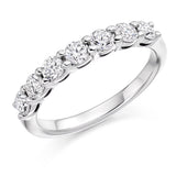 This Ladies 9ct White Gold Half Set Round Brilliant 0.75ct Diamond 3mm Eternity Ring is in a claw set. A claw set Eternity ring complements almost any engagement ring as the claws which hold each diamond resemble the claws which hold the diamond in an engagement ring. This means that a claw set Eternity ring is a great addition in most cases.
