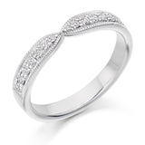 This Ladies Platinum 950 Half Set Round Brilliant 0.20ct Diamond 3.5mm Eternity Ring is in a grain set. A grain set Eternity ring has a small margin of metal either side of the diamond which protects the ring over time. Each diamond is then held in place by a small number of metal beads or grains. This offers an extra sparkle as light not only bounces off each diamond but, also off the grains.