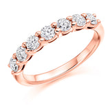 This Ladies 18ct Rose Gold Half Set Round Brilliant 0.75ct Diamond 3mm Wedding Ring is in a claw set. A claw set wedding ring complements almost any engagement ring as the claws which hold each diamond resemble the claws which hold the diamond in an engagement ring. This means that a claw set wedding ring is a great addition in most cases.