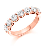 This Ladies 18ct Rose Gold Half Set Round Brilliant 1.50ct Diamond 4mm Wedding Ring is in a claw set. A claw set wedding ring complements almost any engagement ring as the claws which hold each diamond resemble the claws which hold the diamond in an engagement ring. This means that a claw set wedding ring is a great addition in most cases.