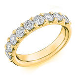 This Ladies 18ct Yellow Gold Half Set Round Brilliant 1.50ct Diamond 4.5mm Wedding Ring is in a claw set. A claw set wedding ring complements almost any engagement ring as the claws which hold each diamond resemble the claws which hold the diamond in an engagement ring. This means that a claw set wedding ring is a great addition in most cases.