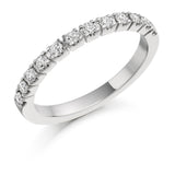 This Ladies 9ct White Gold Half Set Round Brilliant 0.33ct Diamond 2mm Wedding Ring is in a claw set. A claw set wedding ring complements almost any engagement ring as the claws which hold each diamond resemble the claws which hold the diamond in an engagement ring. This means that a claw set wedding ring is a great addition in most cases.