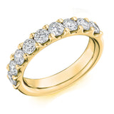 This Ladies 9ct Yellow Gold Half Set Round Brilliant 1.50ct Diamond 4.5mm Wedding Ring is in a claw set. A claw set wedding ring complements almost any engagement ring as the claws which hold each diamond resemble the claws which hold the diamond in an engagement ring. This means that a claw set wedding ring is a great addition in most cases.