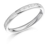 This Ladies Platinum 950 Half Set Mixed 0.30ct Diamond 2.5mm Wedding Ring is in a channel set. A channel set wedding ring has a neat edged style which allows each diamond to sit perfectly side by side. This style is traditional and should be worn next to a engagement ring with either plain shoulders or diamond channel set shoulders of the same style.