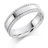 This Ladies Platinum 950 Half Set Round Brilliant 0.26ct Diamond 5.5mm Wedding Ring is in a claw set. A claw set wedding ring complements almost any engagement ring as the claws which hold each diamond resemble the claws which hold the diamond in an engagement ring. This means that a claw set wedding ring is a great addition in most cases.