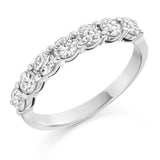 This Ladies Platinum 950 Half Set Round Brilliant 1.00ct Diamond 3.5mm Wedding Ring is in a claw set. A claw set wedding ring complements almost any engagement ring as the claws which hold each diamond resemble the claws which hold the diamond in an engagement ring. This means that a claw set wedding ring is a great addition in most cases.