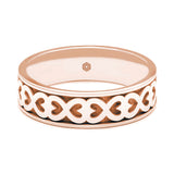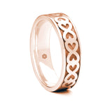 The continuous loop of connected heart symbols surely make this men's 18ct rose gold gold flat court wedding ring the ultimate symbol of love? If you have your own sysmbol of love which is special to you, we would love to add this to your wedding ring. Call us on 0161 4282820 to discuss your idea.