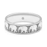 Representing strength and power, the carved elephants around this men's 18ct white gold gold flat court wedding ring ensure it's an eye-catching piece. We can engrave almost anything onto a wedding ring so if you have your own image or design, please do get in touch.