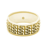 Mens 18ct Yellow Gold Court Shape Ring With Multiple Greek Key Pattern
