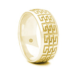 The multiple repeats of this classic Greek Key pattern makes a bold and eye-catching statement on this wider width men's 18ct yellow gold gold court shape wedding ring. Simple designs always look incredible so if you have your own idea, please do get in touch.