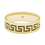 Mens 18ct Yellow Gold Flat Court Ring With Single Row Greek Key Pattern