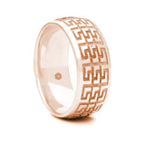 Mens 9ct Rose Gold Court Shape Wedding Ring With Multiple Greek Key Pattern