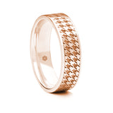 Laser cutting a broken check pattern onto the surface of this men's 9ct rose gold flat court wedding ring results in a stylish and classic dogstooth design appearing. Every wedding ring is lovingly handmade in our Manchester jewellery workshop.