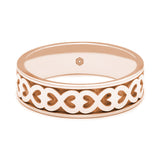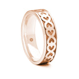 The continuous loop of connected heart symbols surely make this men's 9ct rose gold flat court wedding ring the ultimate symbol of love? If you have your own sysmbol of love which is special to you, we would love to add this to your wedding ring. Call us on 0161 4282820 to discuss your idea.