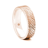 The light and dark areas created by this unique laser patterning give this men's 9ct rose gold flat court wedding ring the illusion of an interesting and modern zebra inspired design. We can create any pattern or design with laser engraving so please do get in touch if you would like to use your own design.