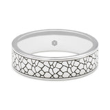 Reminiscent of raku-fired pottery, the crackle effect pattern on the surface of this men's 9ct white gold flat court wedding ring is an eye-catching and modern design. As wedding ring specialists, we hold well over one thousand wedding rings at our showroom in Manchester.
