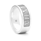 Mens 9ct White Gold Flat Court Wedding Ring with Roman Numerals