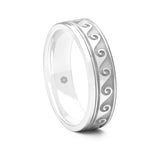 Mens 9ct White Gold Flat Court Wedding Ring With Scroll Pattern