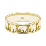Representing strength and power, the carved elephants around this men's 9ct yellow gold flat court wedding ring ensure it's an eye-catching piece. We can engrave almost anything onto a wedding ring so if you have your own image or design, please do get in touch.