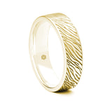 The light and dark areas created by this unique laser patterning give this men's 9ct yellow gold flat court wedding ring the illusion of an interesting and modern zebra inspired design. We can create any pattern or design with laser engraving so please do get in touch if you would like to use your own design.