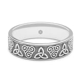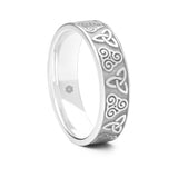 Featuring two Celtic symbols, the Trinity Knot and the Treskilion gives this men's platinum 950 gold gold flat court celtic wedding ring a slight twist on the more traditional Celtic styling. If you have a celtic knot design you would like to use on your wedding ring, we would love to make this bespoke celtic wedding ring for you.