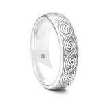 This stunning circular Celtic pattern is an updated version of the more traditional patterns giving this men's platinum 950 gold gold court shape wedding ring a fresh modern look. We love working with our clients on new ideas so if you have a celtic pattern idea for your wedding ring, simply give us a call on 0161 4282820.