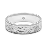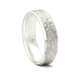 Mens 9ct White Gold Flat Court Shape Wedding Ring With a Hammered Finish Bordered by Polished Edges