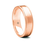 Mens Matte Finish 18ct Rose Gold Flat Court Shape Wedding Ring with Millgrain Edges