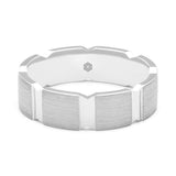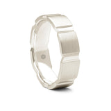 Deep diamond cut grooves along the vertical axis of this mens 18ct white gold flat court wedding ring add a bold statement to its classic flat court shape.